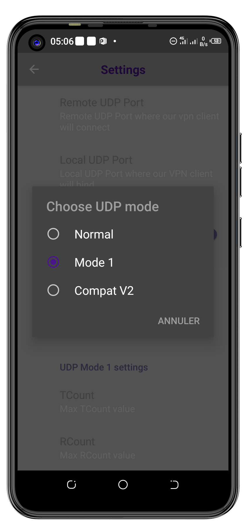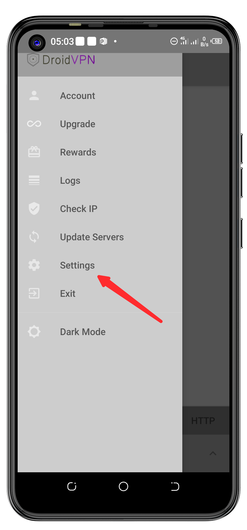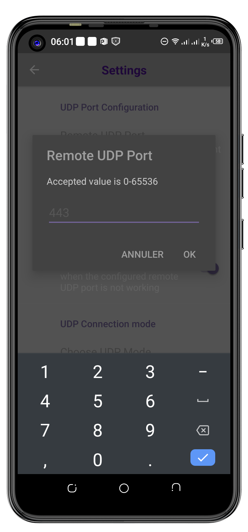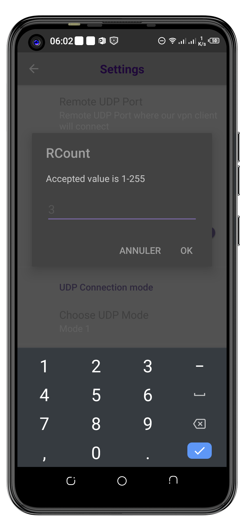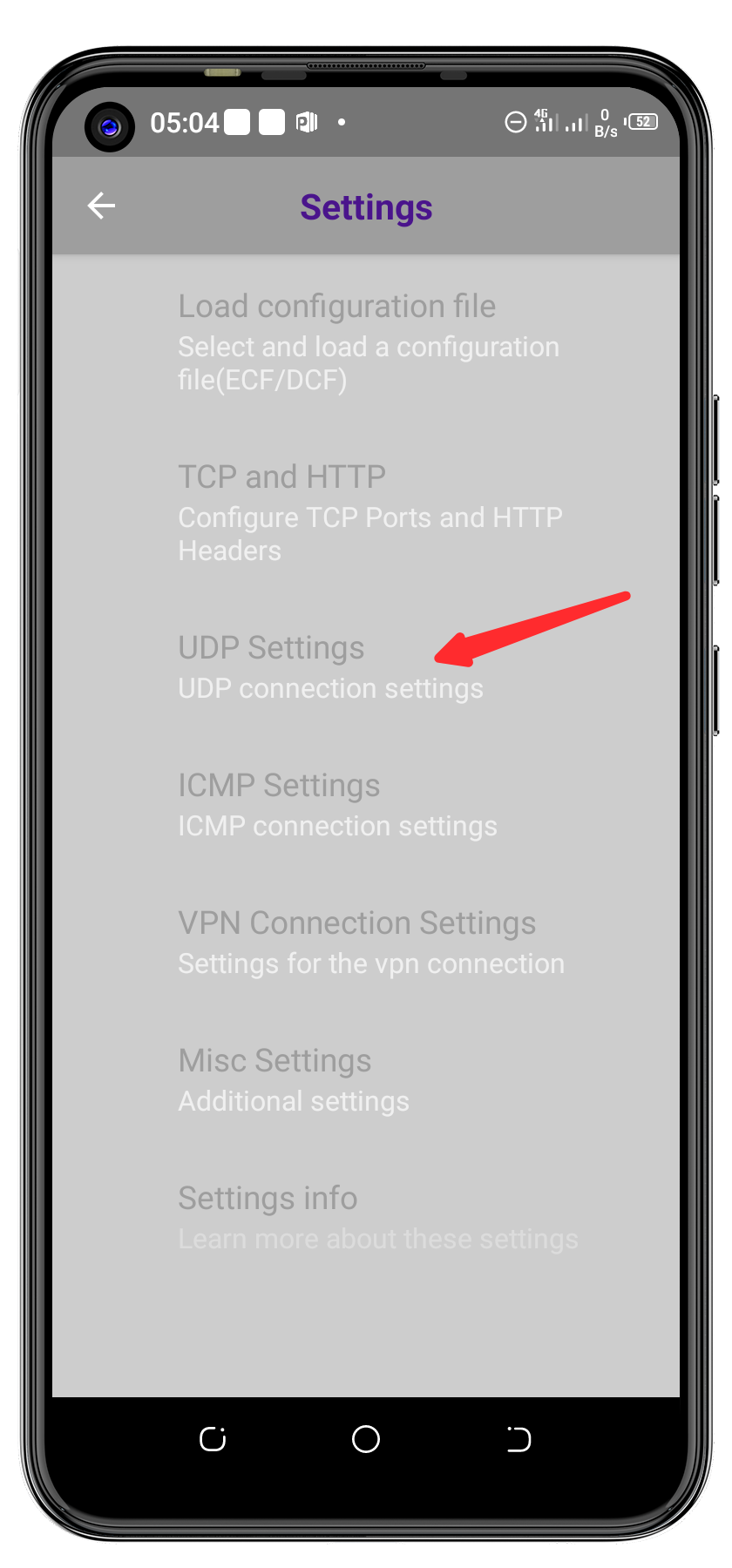 Accédez aux paramètres DroidVPN, puis accédez aux paramètres UDP.