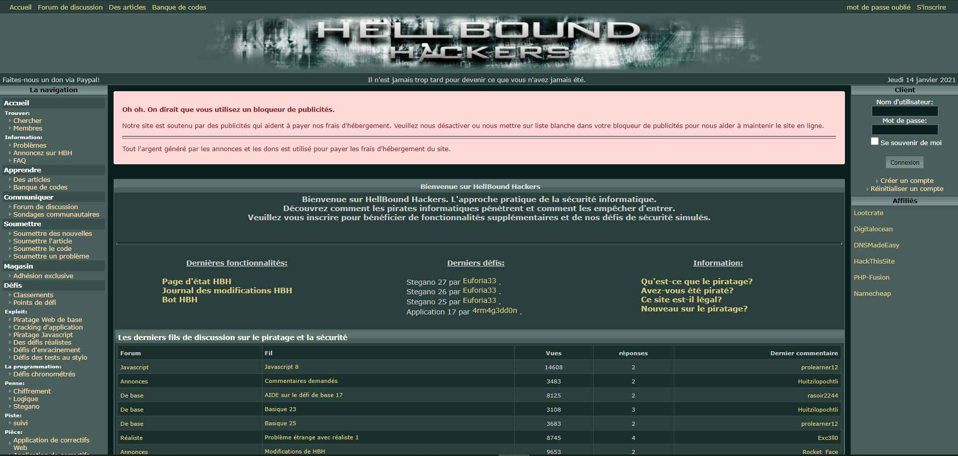 Il existe de nombreux articles de piratage disponibles sur le site, ces articles vous obligent également à améliorer vos compétences. Vous pouvez également discuter de la tâche que vous accomplissez sur le forum des hackers infernaux.