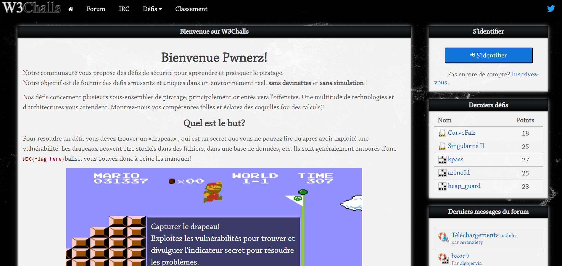 w3challs vous propose des défis de sécurité qui vous conseillent à pratiquer le piratage éthique. Vous obtenez la plupart des tâches de la FCE sur ce site Web.