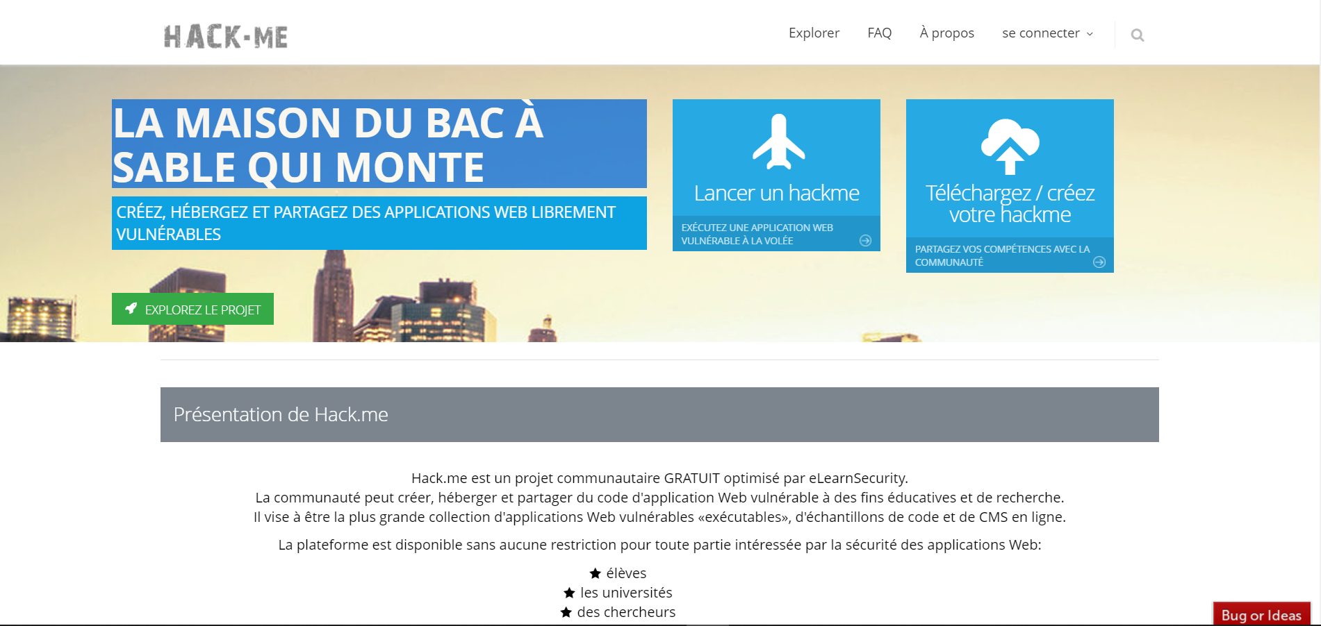 Hack.me est un projet communautaire GRATUIT optimisé par eLearnSecurity. Le site contient une grande collection d’applications Web vulnérables sur vous pouvez tester et améliorer vos compétences en matière de piratage éthique.
